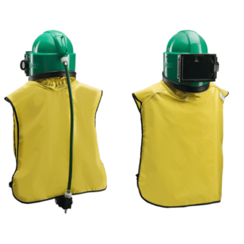 Hełm Apollo 100 CLEMCO do piaskowania i śrutowania. Chroni operatora, tłumi hałas, w zestawie z przepustnicą zgodnie z normą DIN 14594:2018
